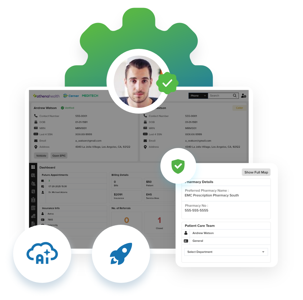 AI systems gain secure, governed access to EHR, billing, and scheduling data—allowing meaningful, transaction-level automation rather than surface-level responses.