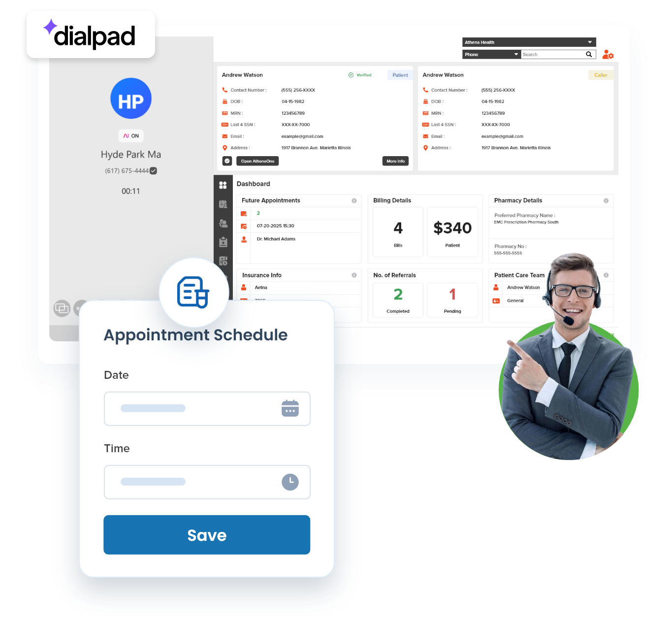Dialpad’s AI handles conversation intelligence. But without live access to your EHR, core banking platform, or dealer management system, your agents are still piecing together context manually — mid-call, under pressure. As a patient, member, or vehicle owner expects better, Agent Accelerator brings it all to one screen.