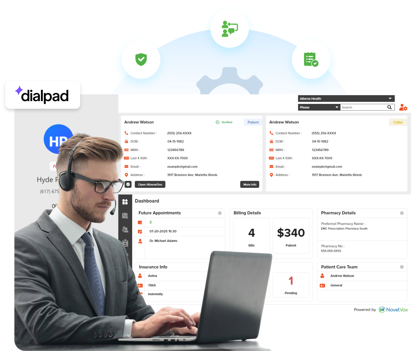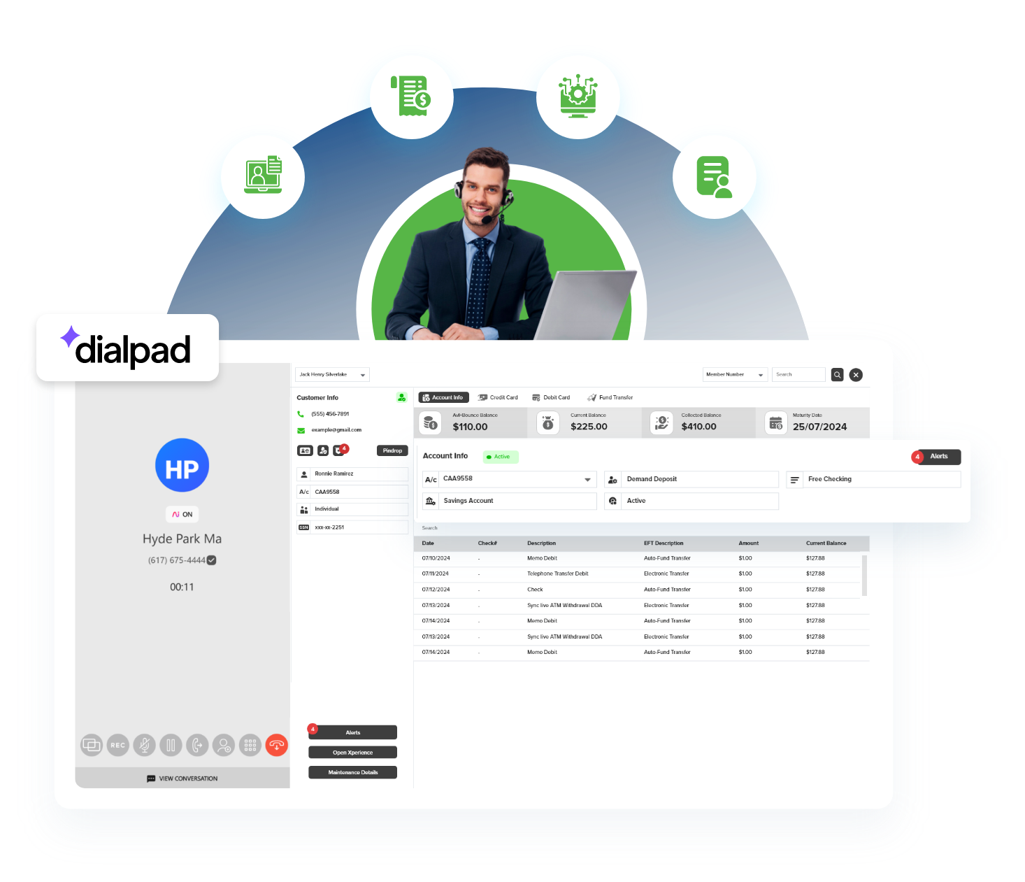 Live data from Epic, Jack Henry, CDK Global, Salesforce, and more — surfaced automatically on every Dialpad call